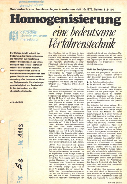 Homogenisierung-eine bedeutsame Verfahrenstechnik [Homogenisator] |