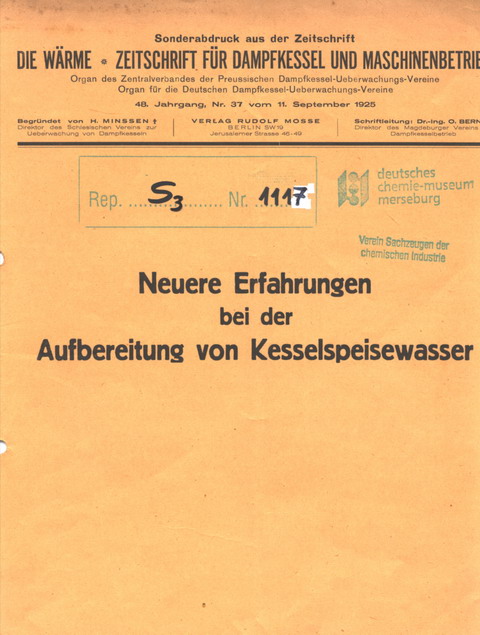 Neuere Erfahrungen bei der Aufbereitung von Kesselspeisewasser |